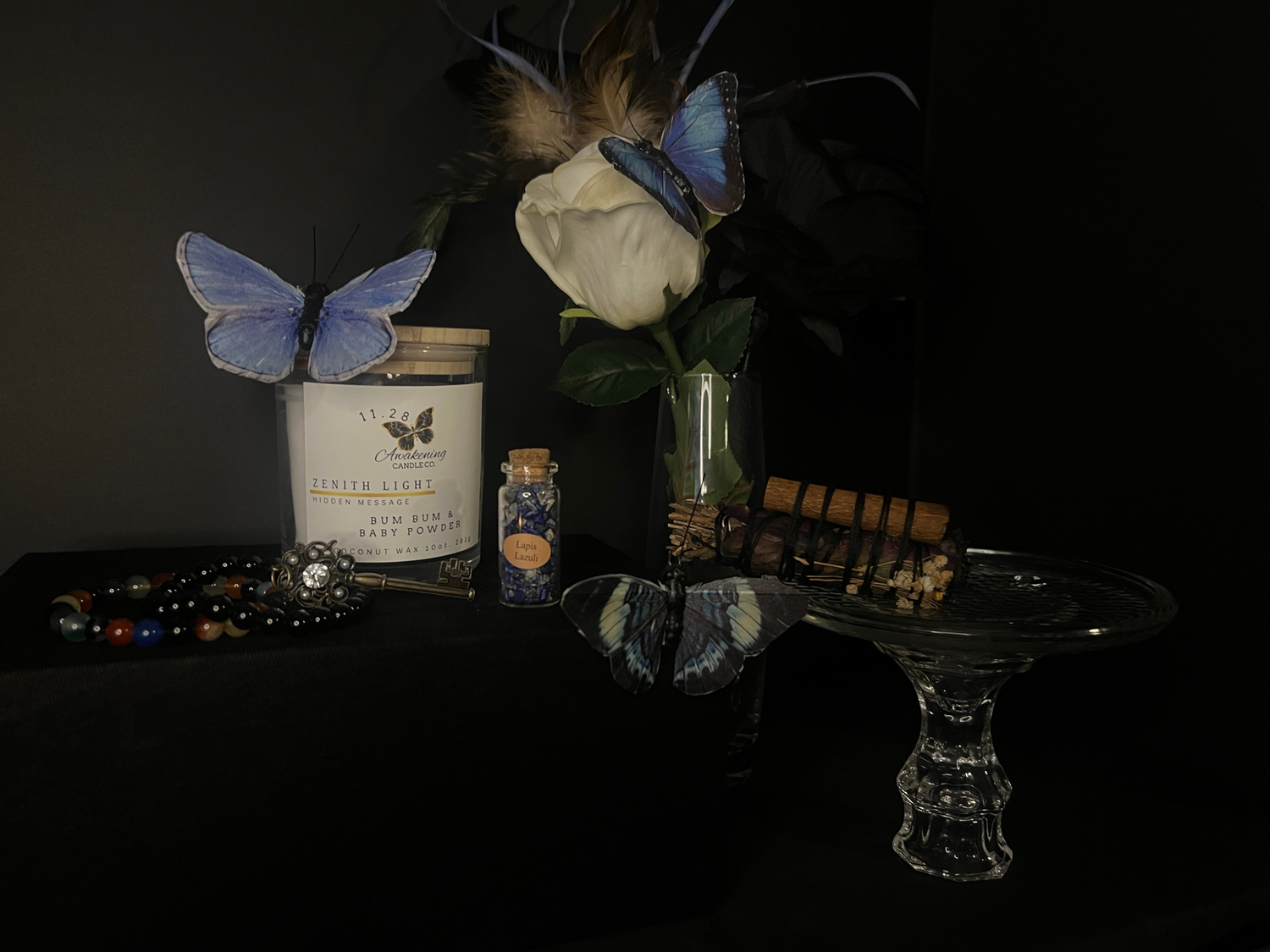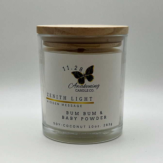 Zenith Light guides you to your highest point- your spiritual peak. As the wax melts away, a message arises, meant to elevate and awaken. The sweet, sun-kissed scent of bum bum mingles with the soft purity of baby powder, creating a luminous atmosphere that feels both ethereal and grounding. let this candle be a beacon to your highest self.