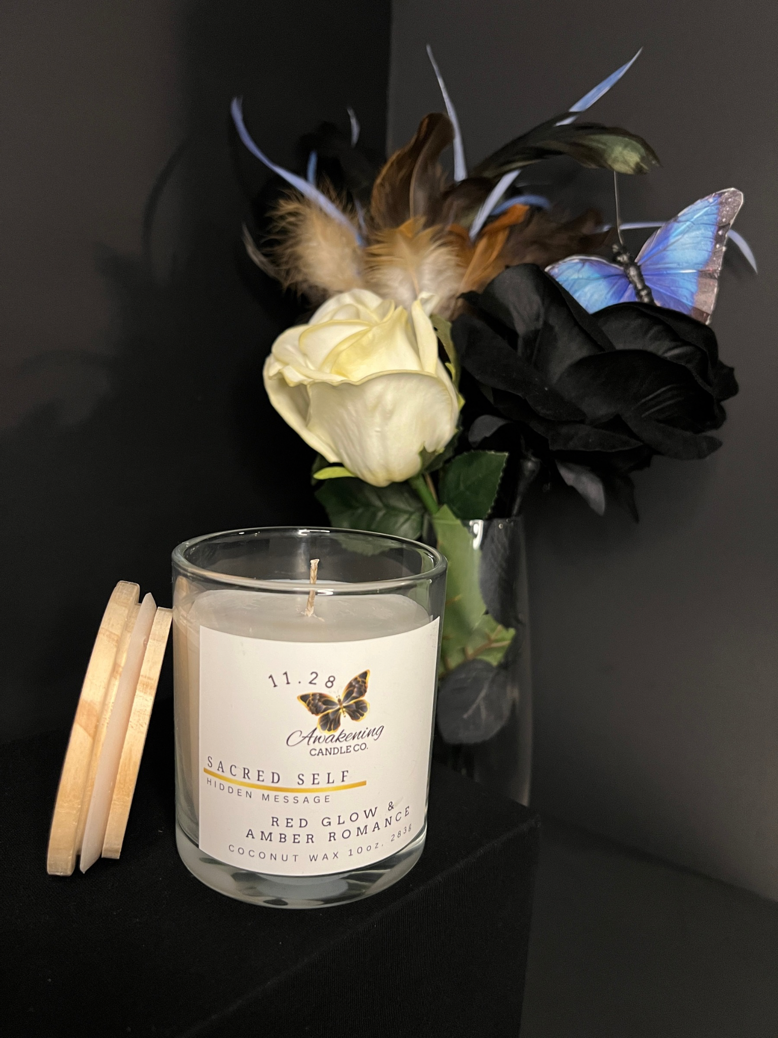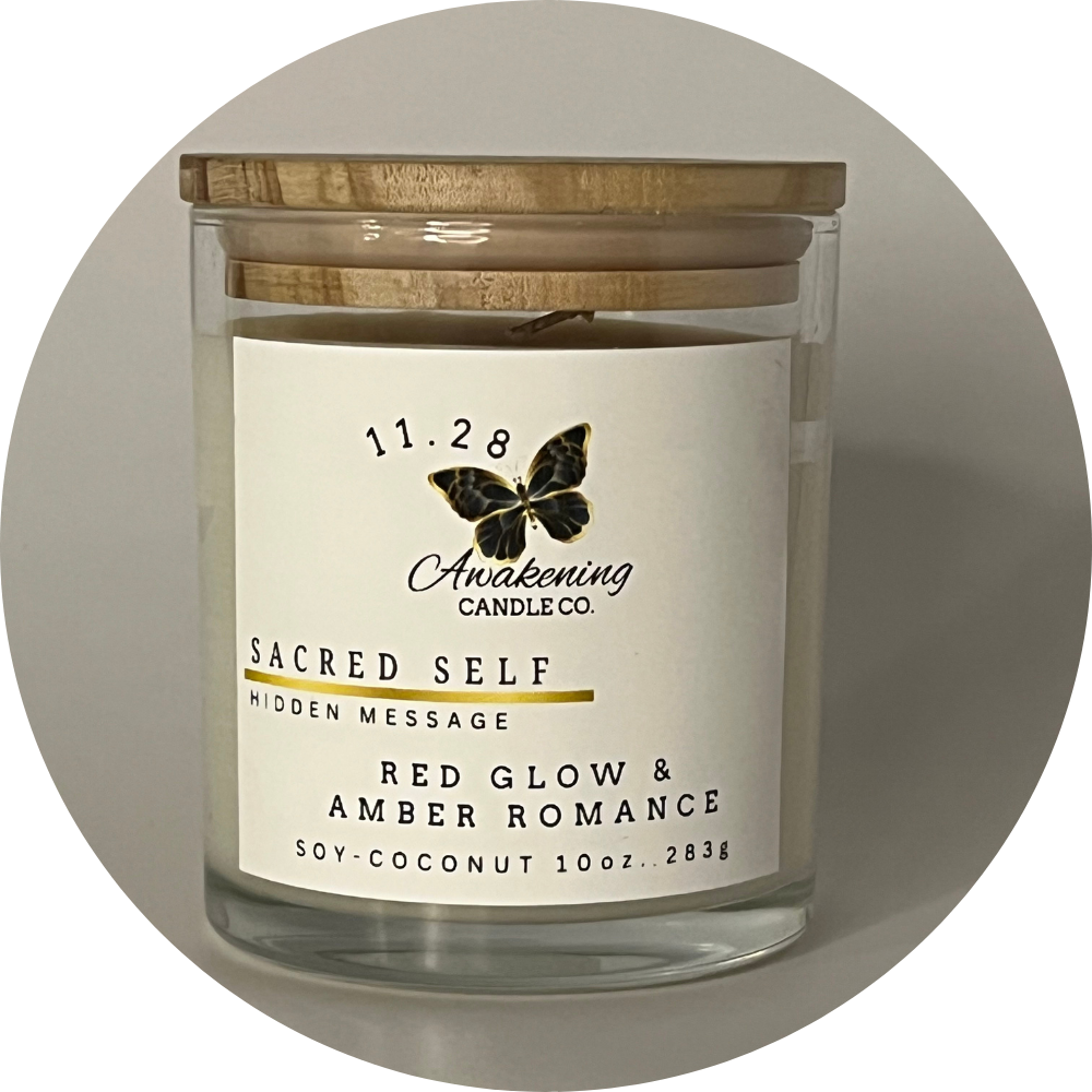Sacred Self Scent: An Alluring blend of red glow and romance amber- sensual, warm, and deeply grounding. Like a soft ember in the dark, this scent wraps you in safety while awakening your inner light.