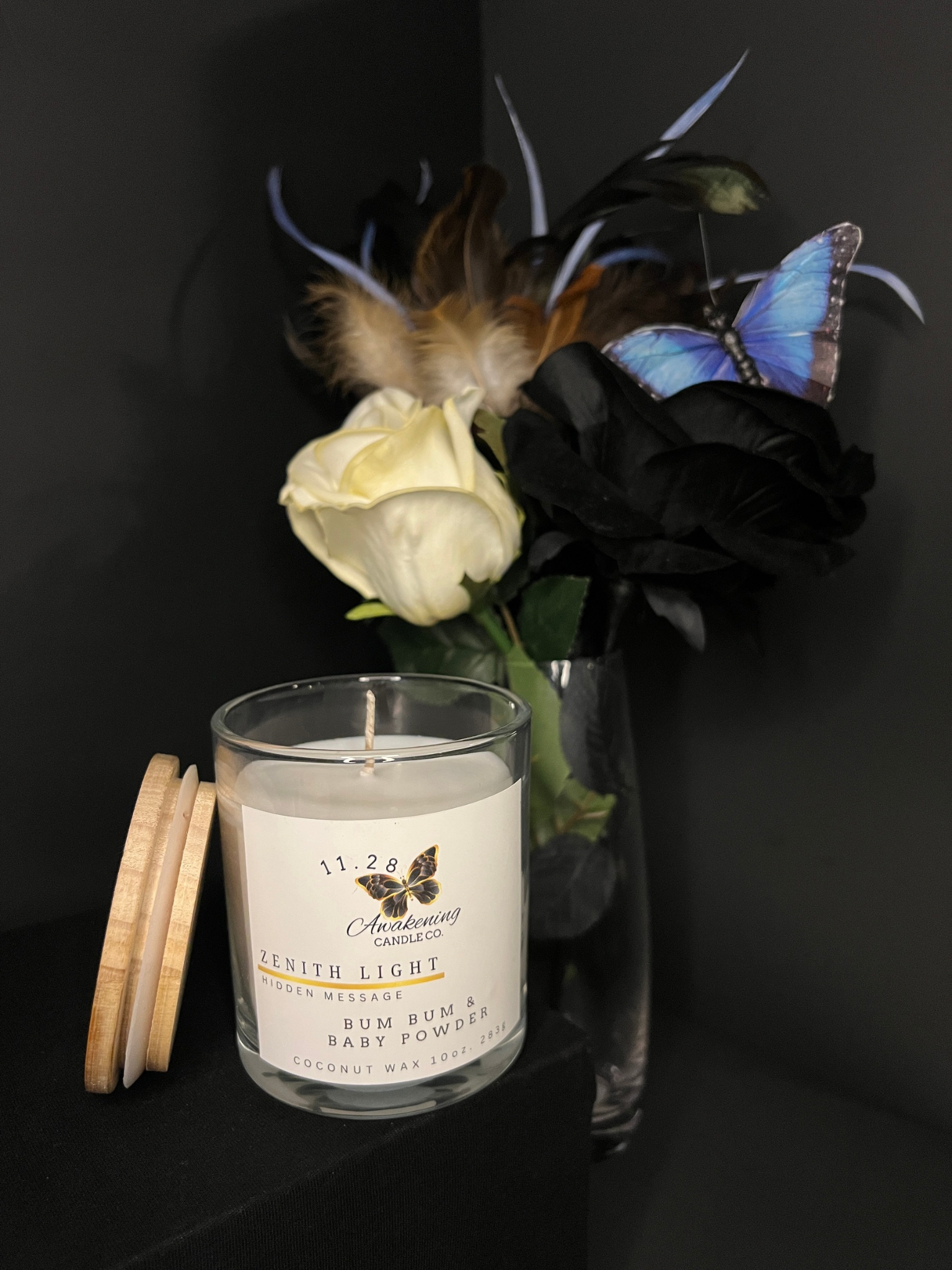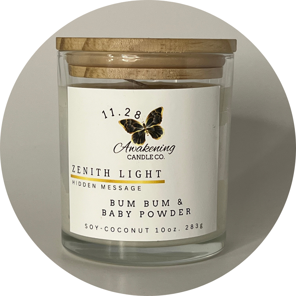 Zenith Light Scent: A luminous blend of bum bum and baby powder- warm, clean, and subtly sensual. this scent feels like sunlight on the skin and soft embrace of new beginnings.